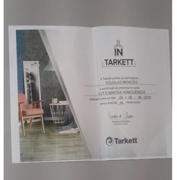 Treinamento na fábrica da TARKETT em são paulo com direto a certificado.