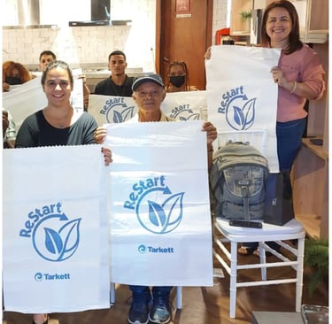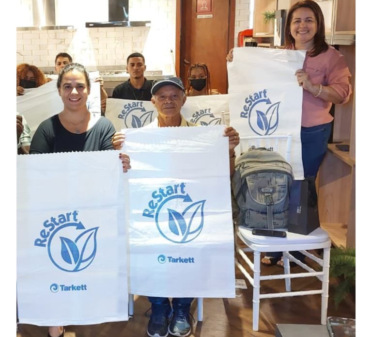 Uma rapidá palestra com Mariana Cambases representante da TARKETT sobre o (Progama RESTART reaproveitamento do piso limpo que volta pra Fábrica) Junto com nossa parceira gerente Andreia da loja (0GUNJA)