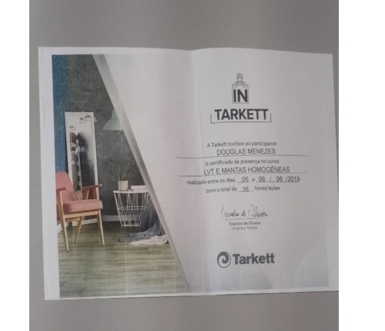 Treinamento na fábrica da TARKETT em são paulo com direto a certificado.
